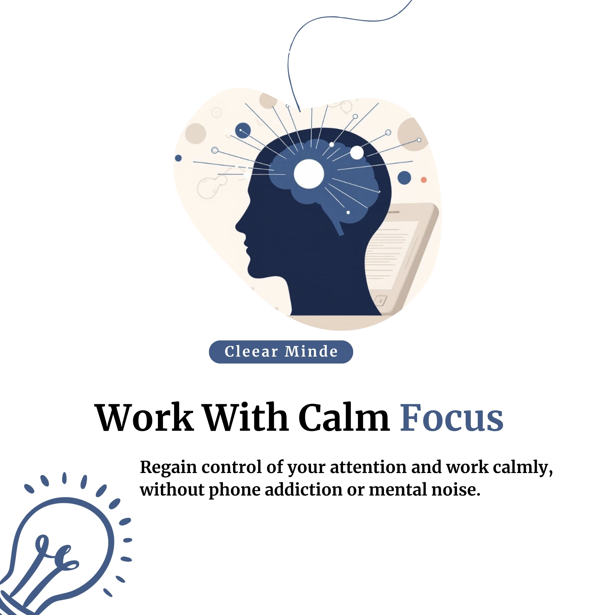 ClearMind helps you work with calm focus — without phone addiction or inner resistance.